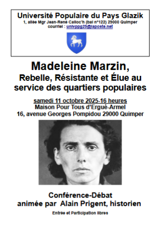 Madeleine Marzin, Rebelle, Résistante et Elue au service des quartiers populaires-Conférence-débat animée par Alain Prigent (UPPG-25/09/25)