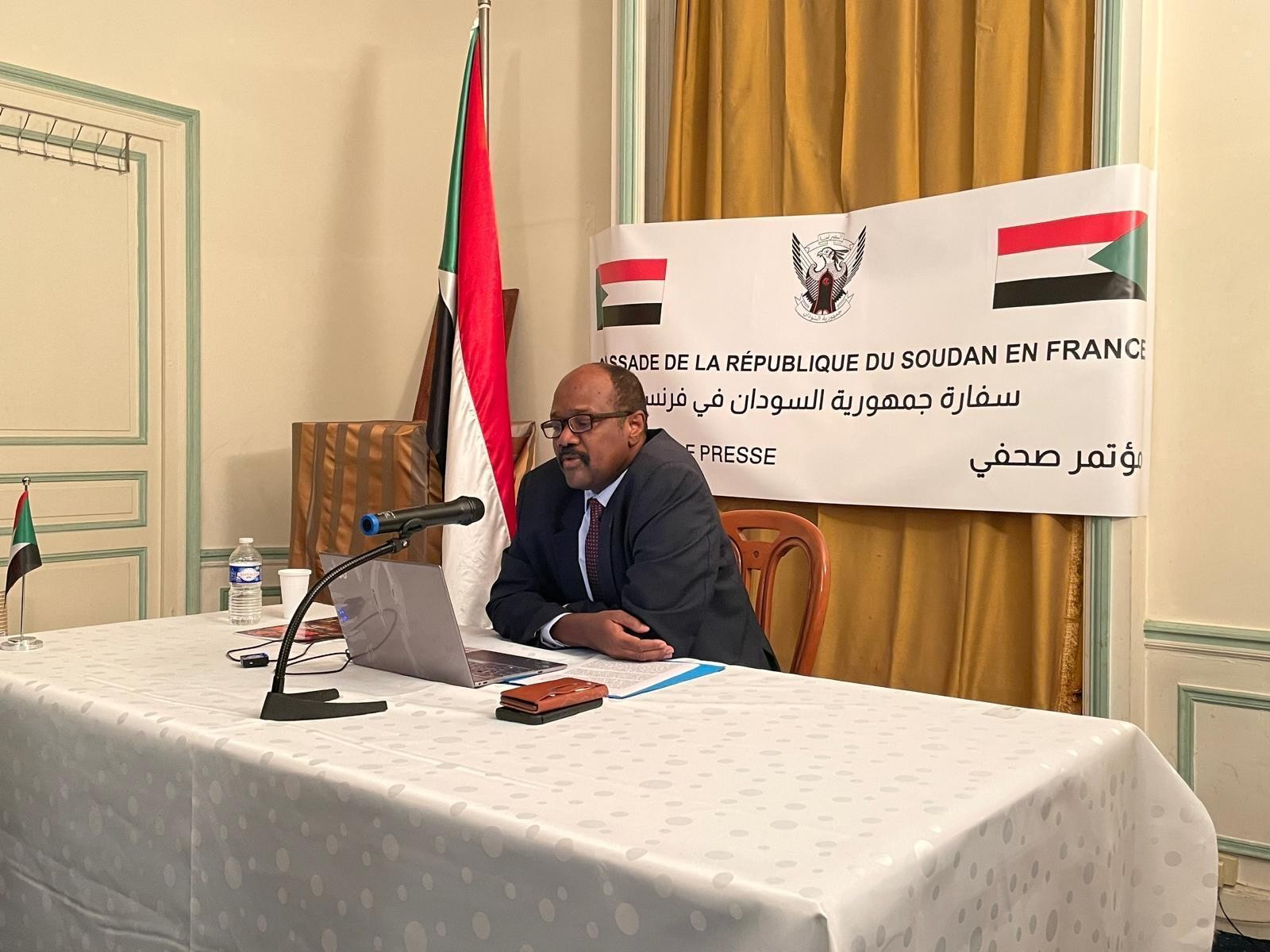 – M. Khalid M. Farah, Ambassadeur du Soudan en France le 6 novembre 2024 : « la guerre tragique inter-soudanaise, relancée le 15 avril 2023 n’est ni une lutte pour le pouvoir entre deux généreux, ni une guerre civile, mais le résultat d’un coup d’État factieux qui a échoué mené par le chef de la milice paramilitaire FSR ». Photo DR