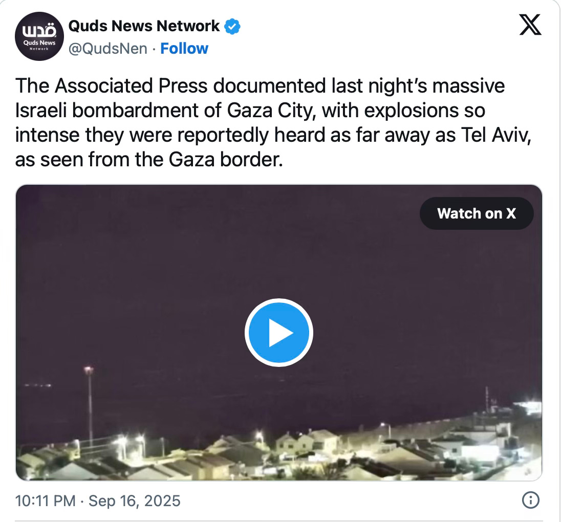 Le 16 septembre, le ministre israélien de la Défense, Israel Katz, a promis de détruire la ville de Gaza si le Hamas ne libère pas les Israéliens qu’il détient encore captifs dans la bande de Gaza.