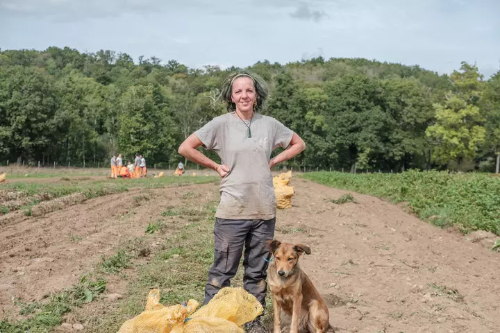 « Malgré le taupin [coléoptère qui sectionne les racines], c’est mieux que l’année dernière ! » se réjouit Kim, l’une des deux maraîchères, en enlevant la terre de ses mains. Elles ont produit 1,2 tonne de pommes de terre en 2024. Loin des 15 tonnes consommées par la cuisine centrale de Saint-Junien. Mais Marie est optimiste : « Nos champs de patates sont dans une ancienne prairie qui demande à être travaillée plusieurs années pour donner sa pleine capacité. » Les 6 hectares du potager sont situés sur l’île de Chaillac, la plus grande sur la Vienne. Un lieu quasi entièrement en zone inondable, terre d’élevage plus que de maraîchage.