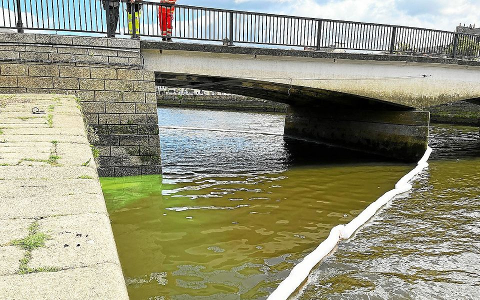 Le barrage installé par les pompiers permet seulement de contenir la pollution à la surface de l’Elorn. (Photo Le Télégramme/Valérie Gozdik)