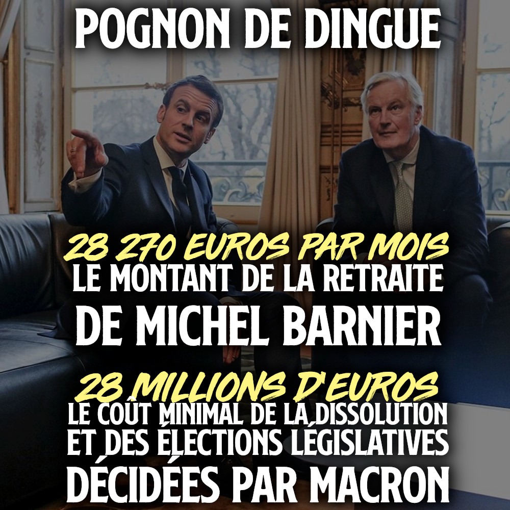28.000 euros de retraite pour Barnier, 28 millions gaspillés pour les élections avec la dissolution