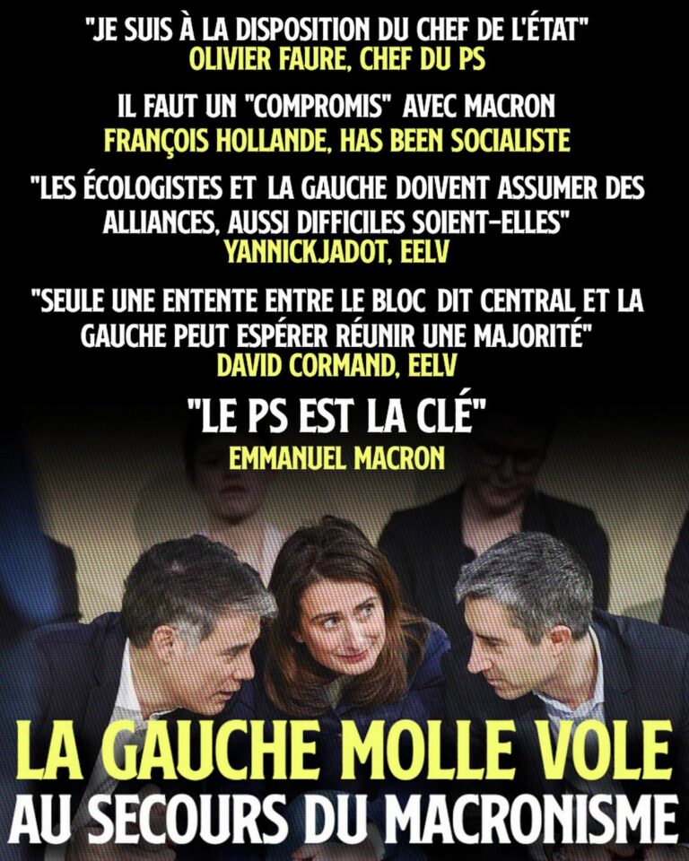 «Seule une entente entre le bloc dit central et la gauche peut espérer réunir une majorité» déclare David Cormand d’EELV, dans un post liké par Marine Tondelier. Même le quotidien l’Huma met en couverture ce titre étrange : «La gauche est-elle prête à gouverner ?» avec les visages de Roussel, Faure et des autres, comme si c’était une option crédible et souhaitable.
