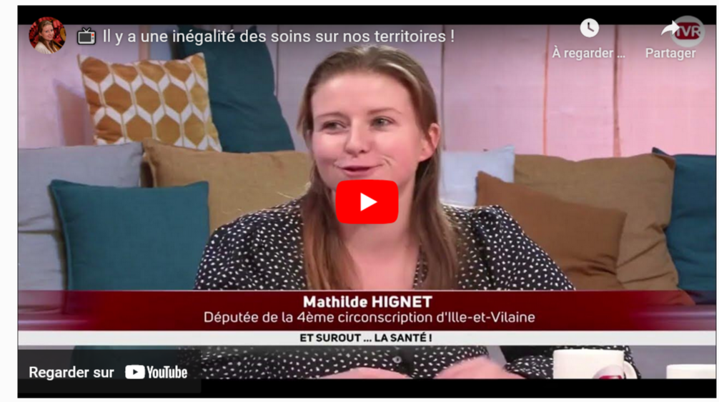 Mathilde Hignet était invitée sur TVR Soir pour parler de la proposition de loi transpartisane pour lutter contre les déserts médicaux. Cette proposition de loi est initiée par Guillaume Garot (député PS – Mayenne). 4 mesures phares : la régulation à l’installation des médecins et chirurgiens-dentistes, la démocratisation des études de médecine, le développement des centres de santé, l’obligation de la permanence de soins. Un Tour de France a commencé le 1er février pour sensibiliser la population à cette question des déserts médicaux et faire en sorte que cette proposition de loi soit mise à l’ordre du jour de l’Assemblée Nationale par la conférence des présidents.