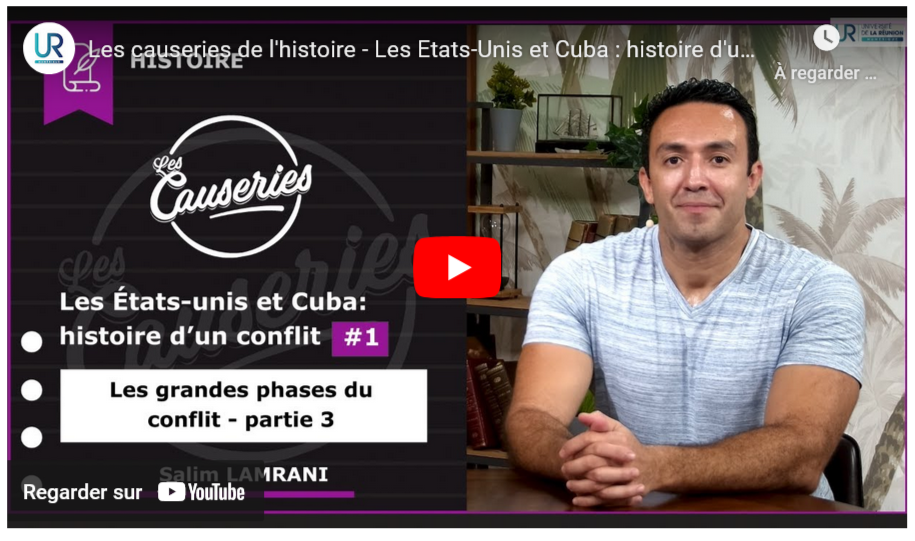 Dans ce 3e volet, Christophe Porlier, Chargé de mission Université Numérique en Région Réunion et le Dr Salim Lamrani, Maître de conférences HDR à l’Université de La Réunion et spécialiste de l’histoire de l’Amérique Latine poursuivent l’exploration de cette thématique concernant les relations conflictuelles entre Etats-Unis et Cuba.