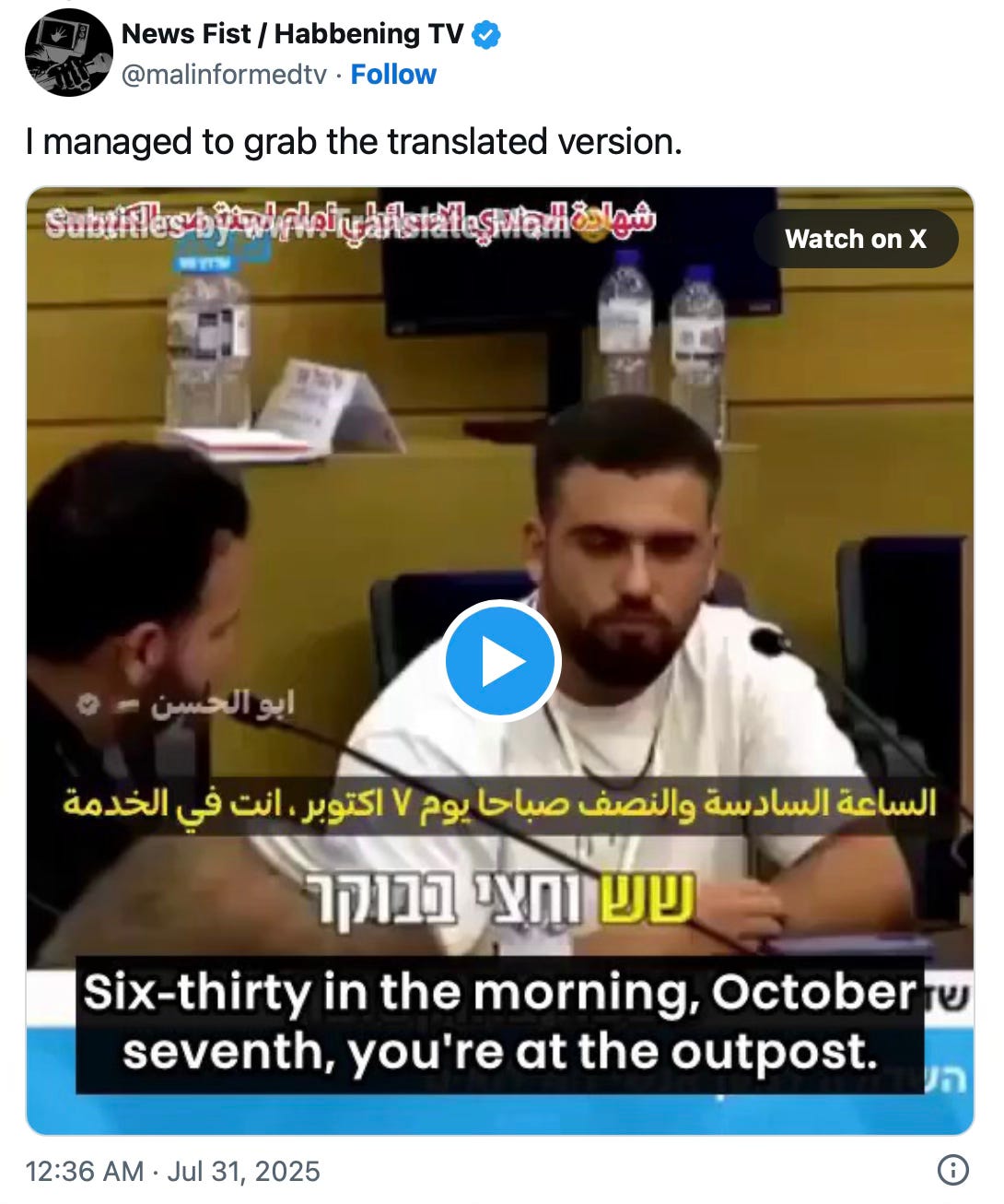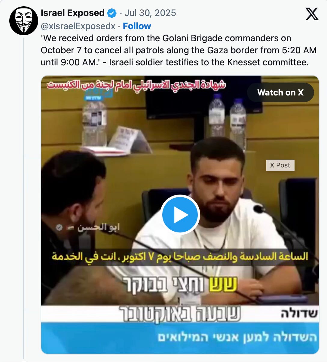 Source originale : https://thecradle.co/articles/israeli-soldier-reveals-strange-order-to-cancel-gaza-border-patrols-on-7-oct